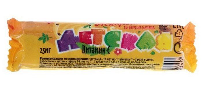 Есть вопросы по товару "Аскорбиновая кислота Банан детская Аскопром 10 таблеток"?