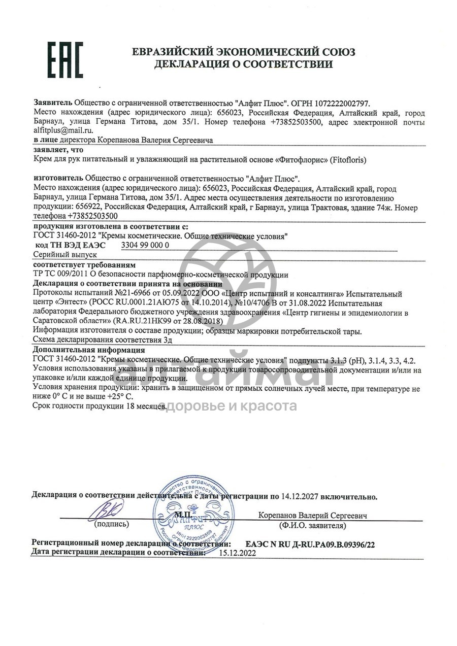 - Купите Крем для рук «Фитофлорис», 75 гр в Люберцах по доступной цене 174 ₽ с доставкой на дом или заберите Ваш заказ в Люберцах из ближайшего пункта выдачи, сделав заказ на AltaiMag.ru.