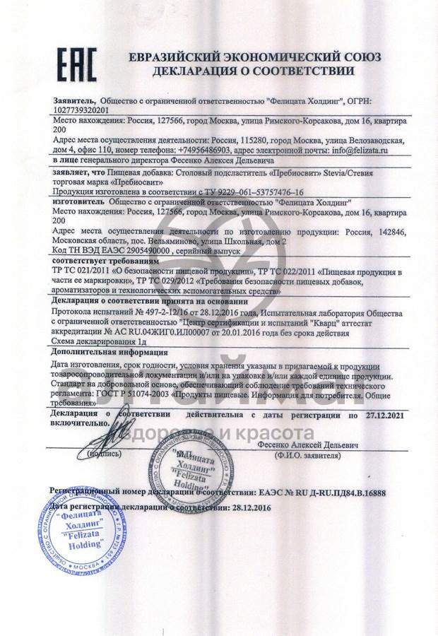 - Чтобы купить Подсластитель пребиосвит Стевия «Prebiosweet Stevia», 150 г совершите всего несколько шагов: укажите количество продукта и нажмите на кнопку «Купить».
