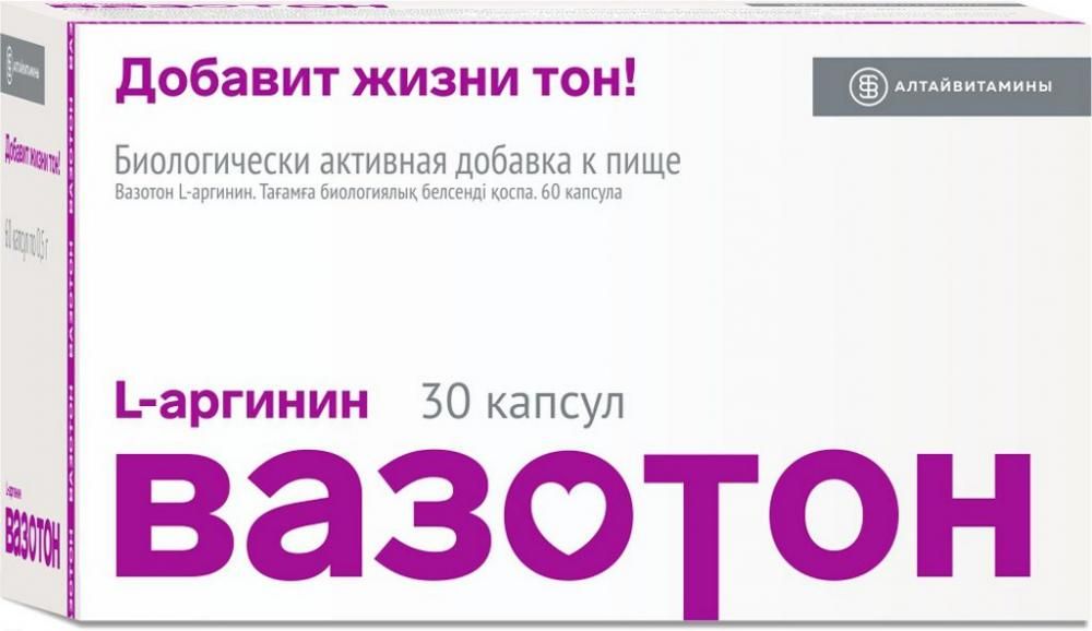 Для этой цели фармацевтической компанией «Алтайвитамины» была создана биологически активная добавка Вазотон, содержащая 100 % L-аргинин.