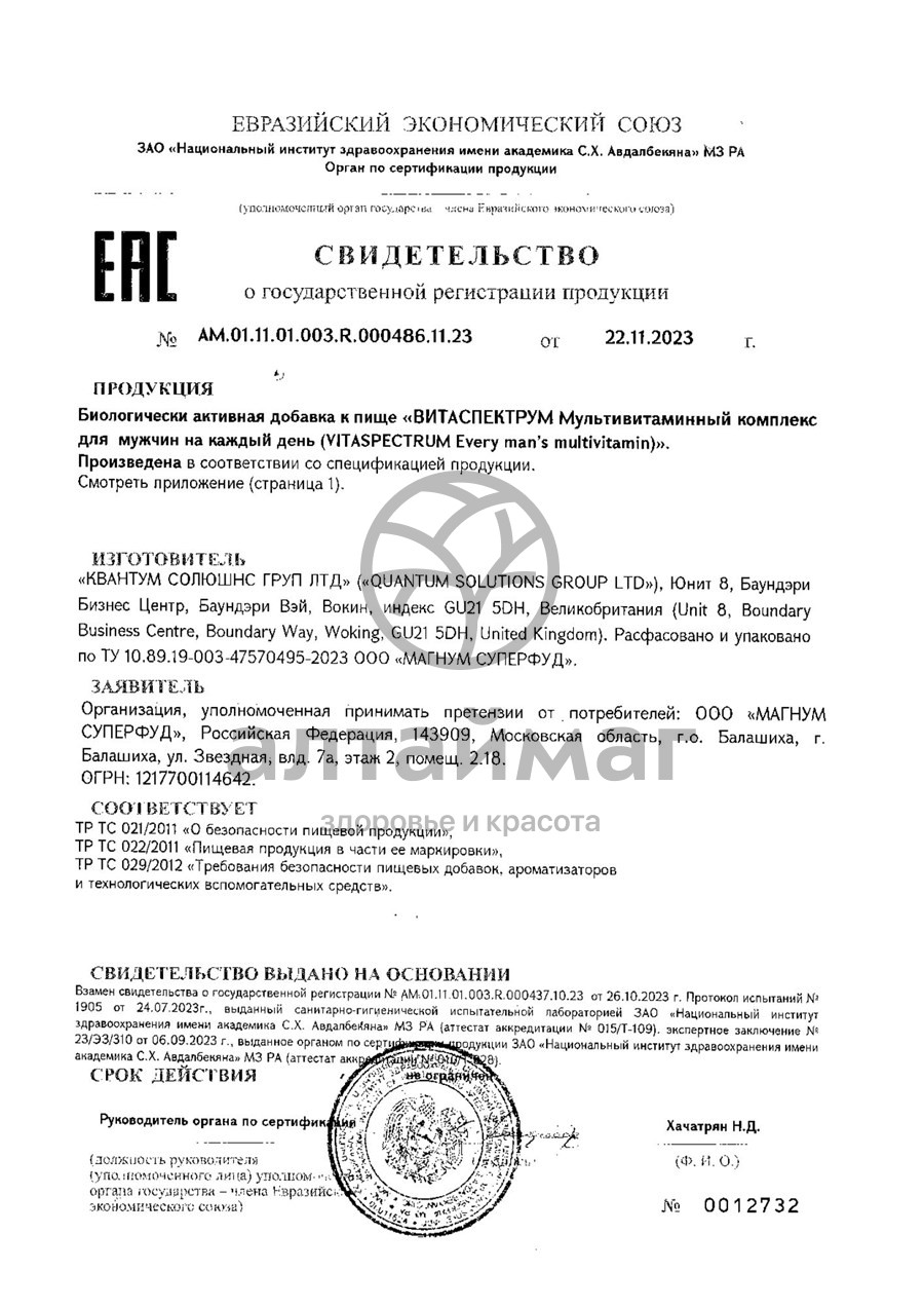 - Купите Витамины для мужчин VitaSpectrum 60 таблеток в Люберцах по доступной цене 784 ₽ с доставкой на дом или заберите Ваш заказ в Люберцах из ближайшего пункта выдачи, сделав заказ на AltaiMag.ru.