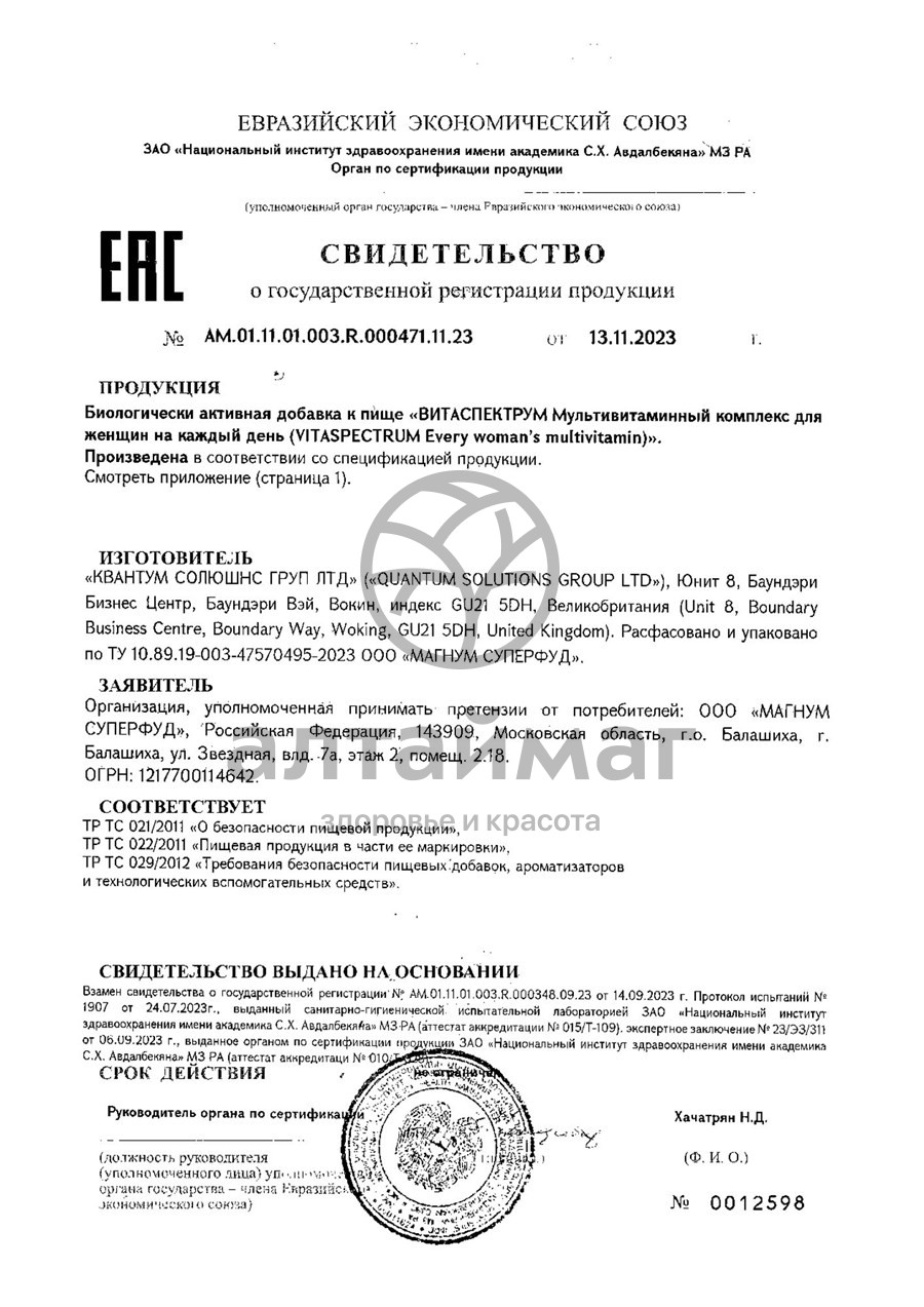 - Купите Витамины для женщин VitaSpectrum 60 таблеток в Люберцах по доступной цене 785 ₽ с доставкой на дом или заберите Ваш заказ в Люберцах из ближайшего пункта выдачи, сделав заказ на AltaiMag.ru.
