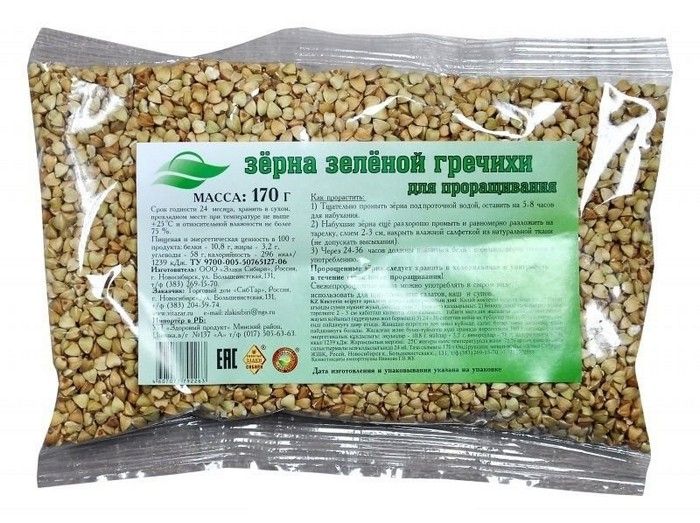 - Чтобы купить Зерна зеленой гречихи для проращивания (зеленая гречка),170 г совершите всего несколько шагов: укажите количество продукта и нажмите на кнопку «Купить».